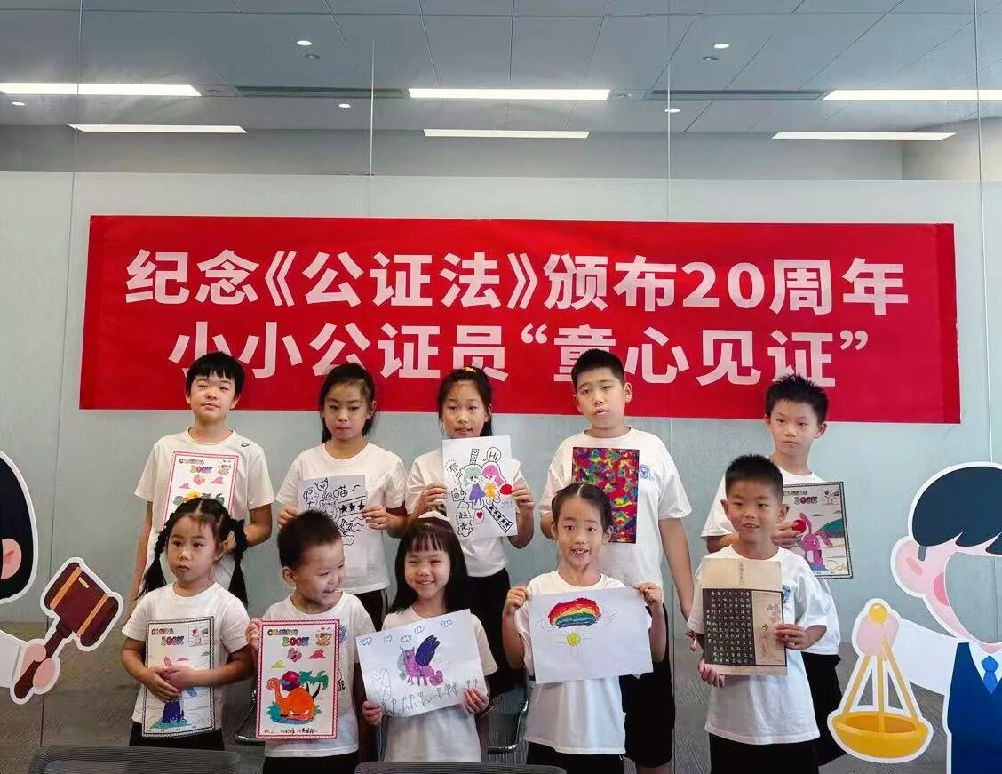 紧接着,他们还体验了“尚云链”电子存证。孩子们将自己带来的画作和现场创作的作品上传至平台,获得了电子存证证书。科技与公证的结合,让孩子们切身感受到数字公证的力量。